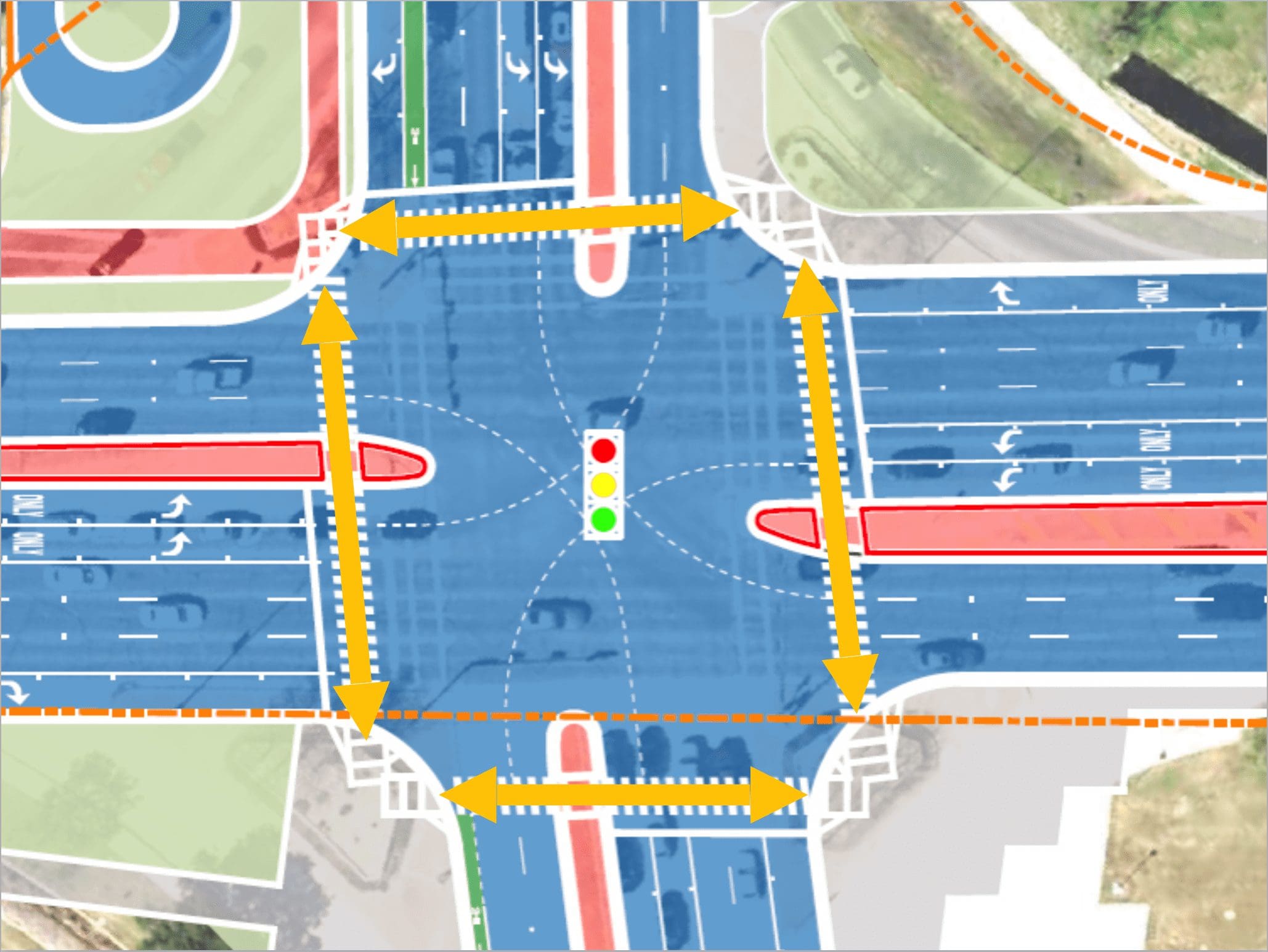 - New traffic signals that improve pedestrian flow across the roadway.