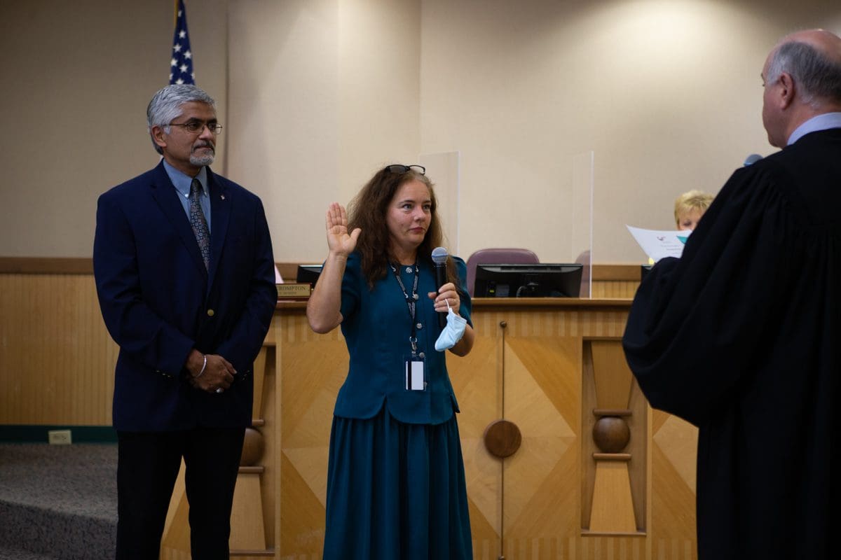 Council members Elizabeth Cunha, Linda Harvell and Bob Brick were sworn into office by Municipal Court Presiding Judge Ed Spillane.Â