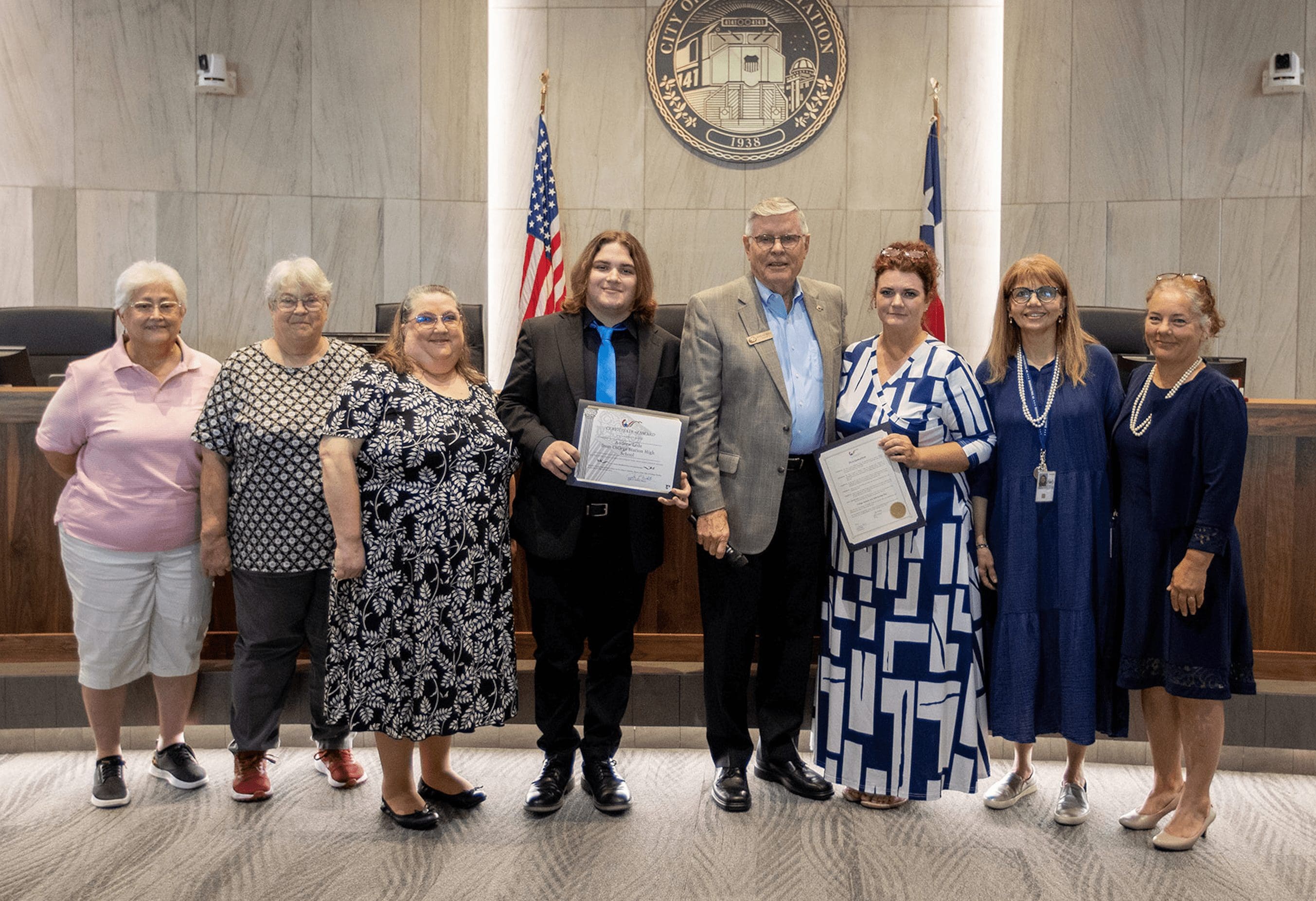 Mayor John Nichols recognized Andrew Lede for receiving a $5,000 James Bradfield Fine Arts Scholarship from the Arts Council of Brazos Valley. Lede plans to study jazz/piano at Loyola University in New Orleans.
