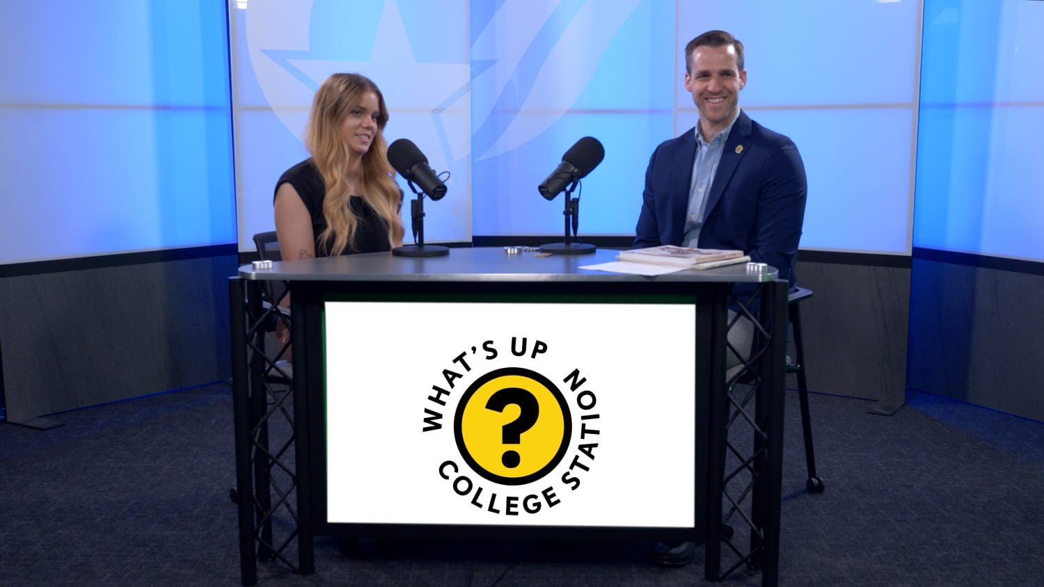 In this episode of “What’s Up, College Station?” Marketing Coordinator Grace Hallowell and Assistant to the City Manager Ross Brady discuss the city’s 85th anniversary celebration on Oct. 18. The event’s highlight will be the official unveiling of a detailed history wall on the second floor of College Station City Hall.
