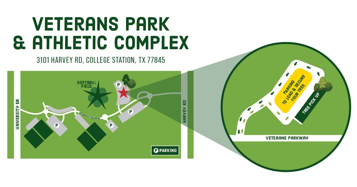 Supplies are limited, and lines may form before the start time, so we recommend arriving early. The limit is one tree per vehicle, and a College Station resident must be present. A state ID, driver’s license, or utility bill showing a current College Station address is required.